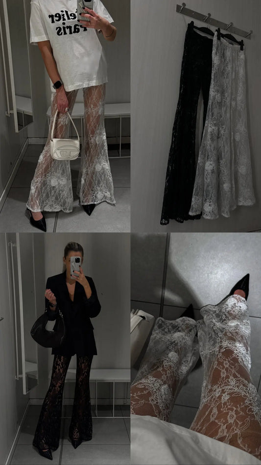 Italian Lace Pants & Feather-Detail Blazer Set – Black & White | Full Look -10% OFF