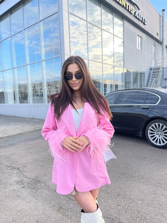 Pink Blazer With Feathers