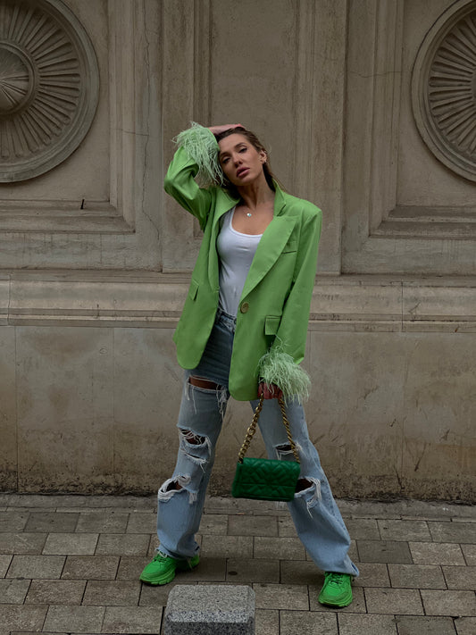 Green Blazer With Feathers